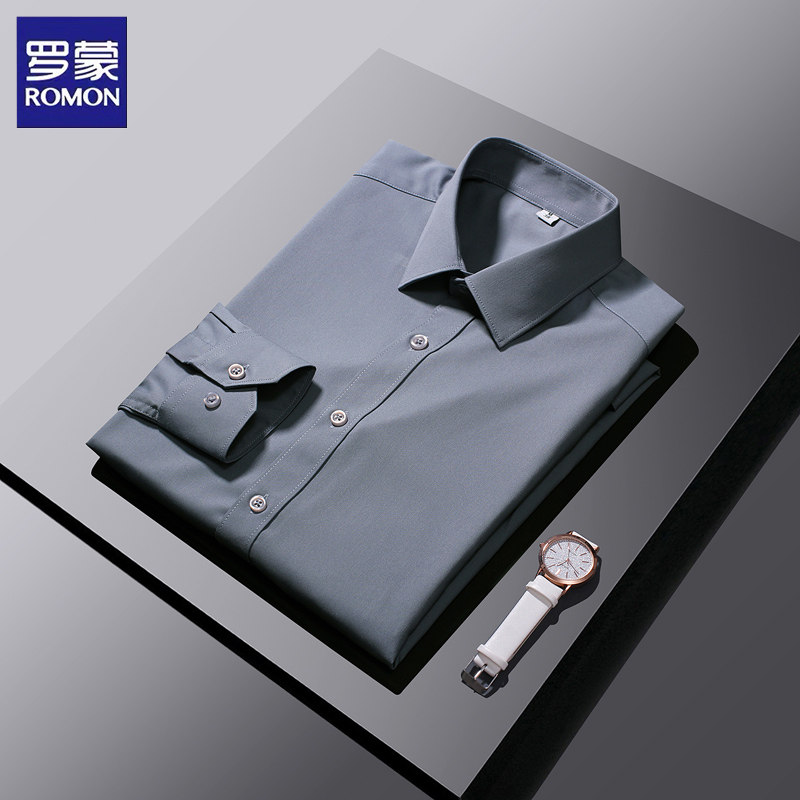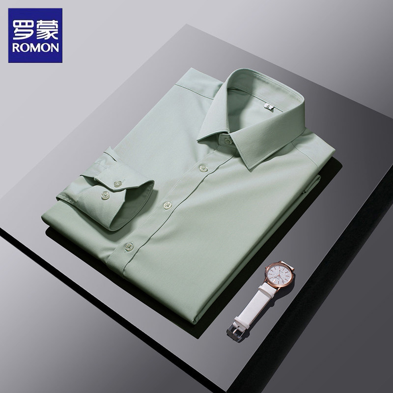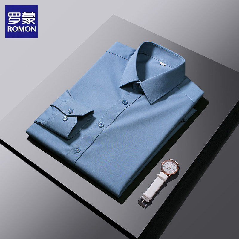 罗蒙竹纤维长袖衬衫男商务休闲纯色上衣抗皱免烫日常秋季衬衣
