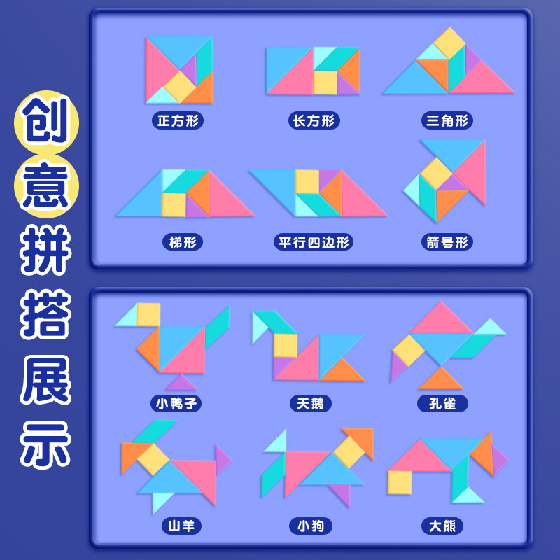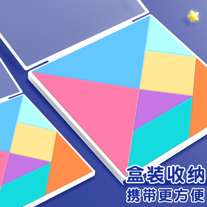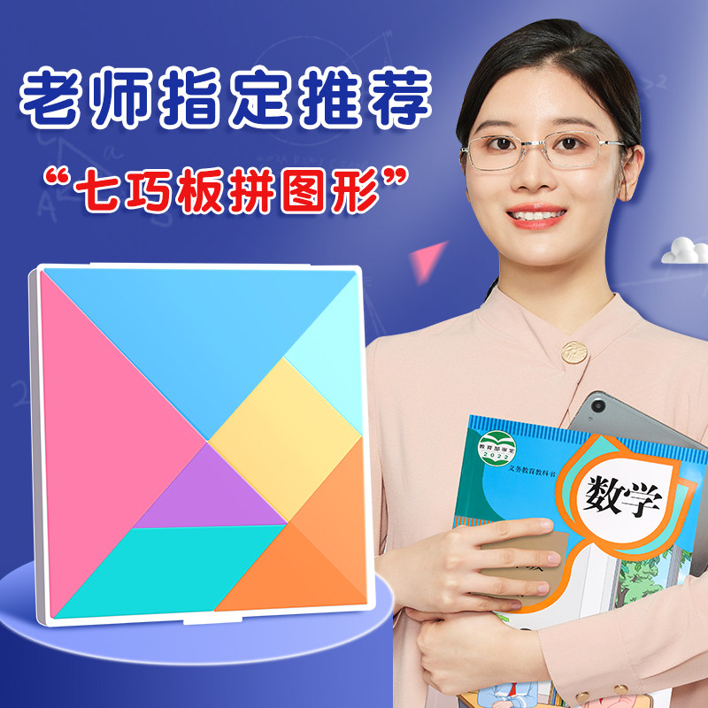 小学生益智七巧板智力拼图二年级教具儿童数学比赛专用几何图形正方形长方形三角一年级认识几何形状计数圆片