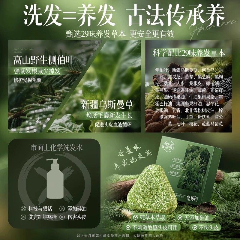 侧柏叶洗发皂洗头新疆乌斯曼草何首乌中药手工固发防断发控油去屑