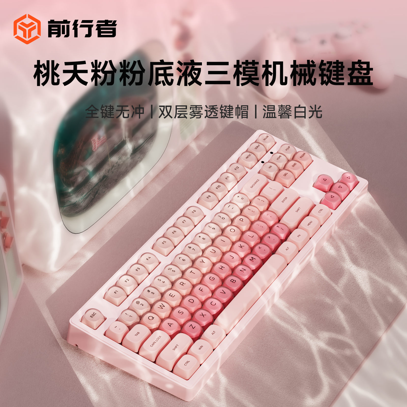 前行者MT87粉底液机械键盘无线蓝牙鼠标套装女生办公高颜值青轴
