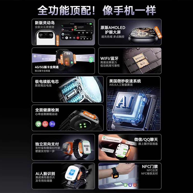 华强北s11ultra新款蜂窝顶配版s10watch智能电话手表可插卡WiFi下载初高中生成人男款女士专用多功能运动手环