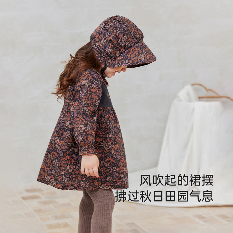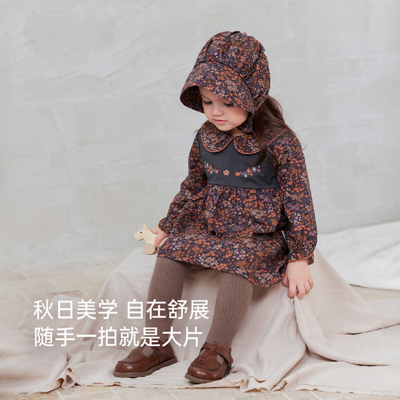 babylove女宝宝连衣裙春秋纯棉裙子婴幼儿法式洋气碎花裙暖雾花踪