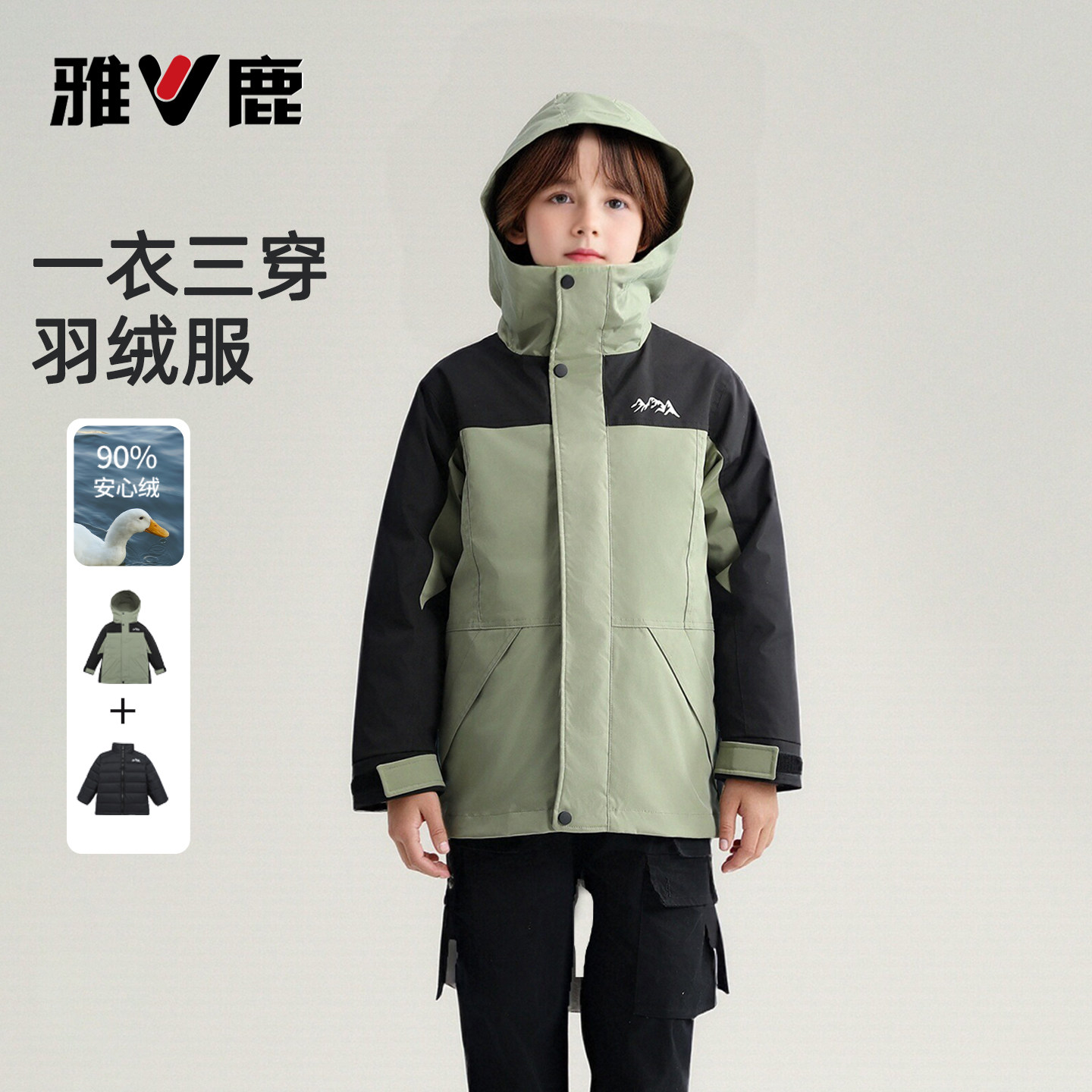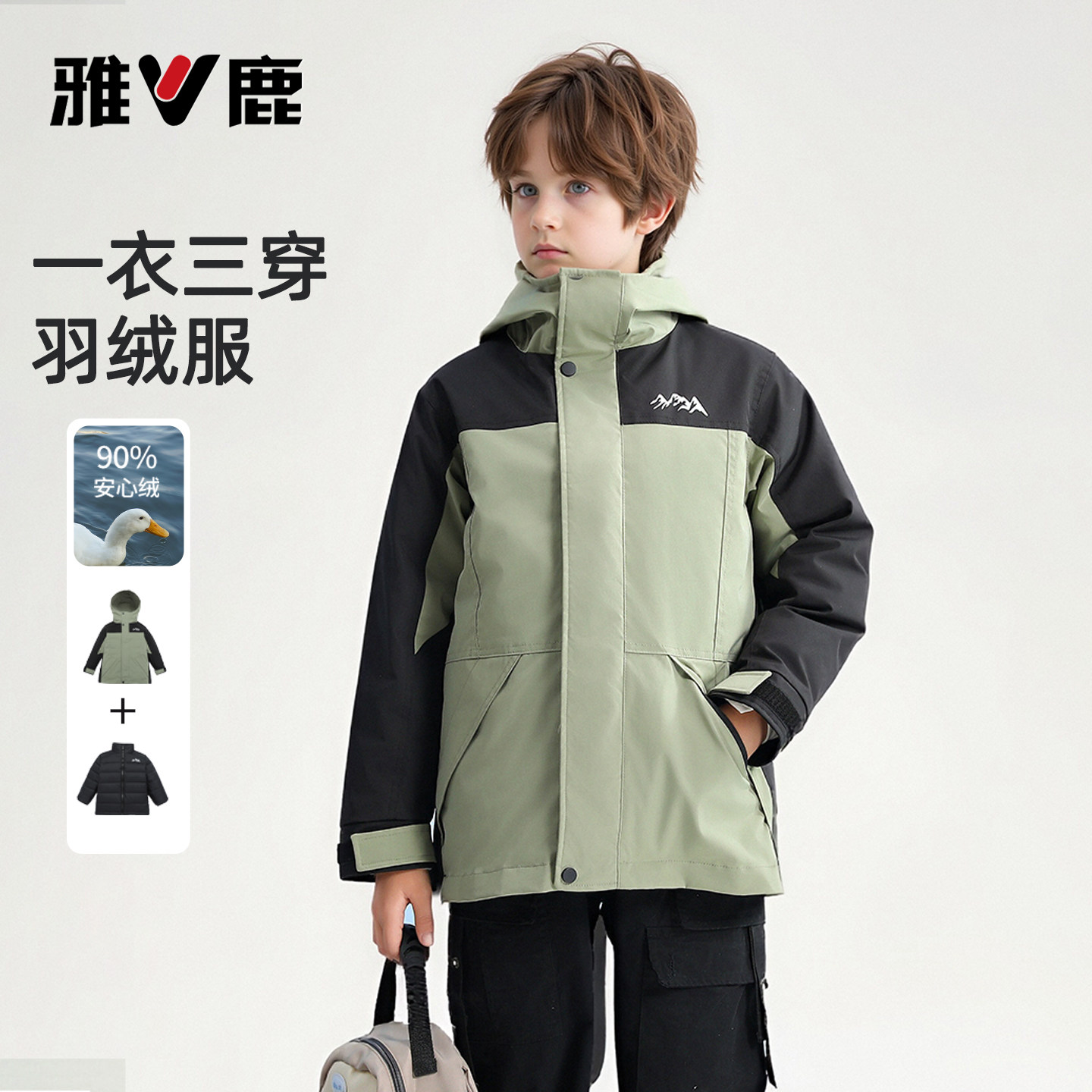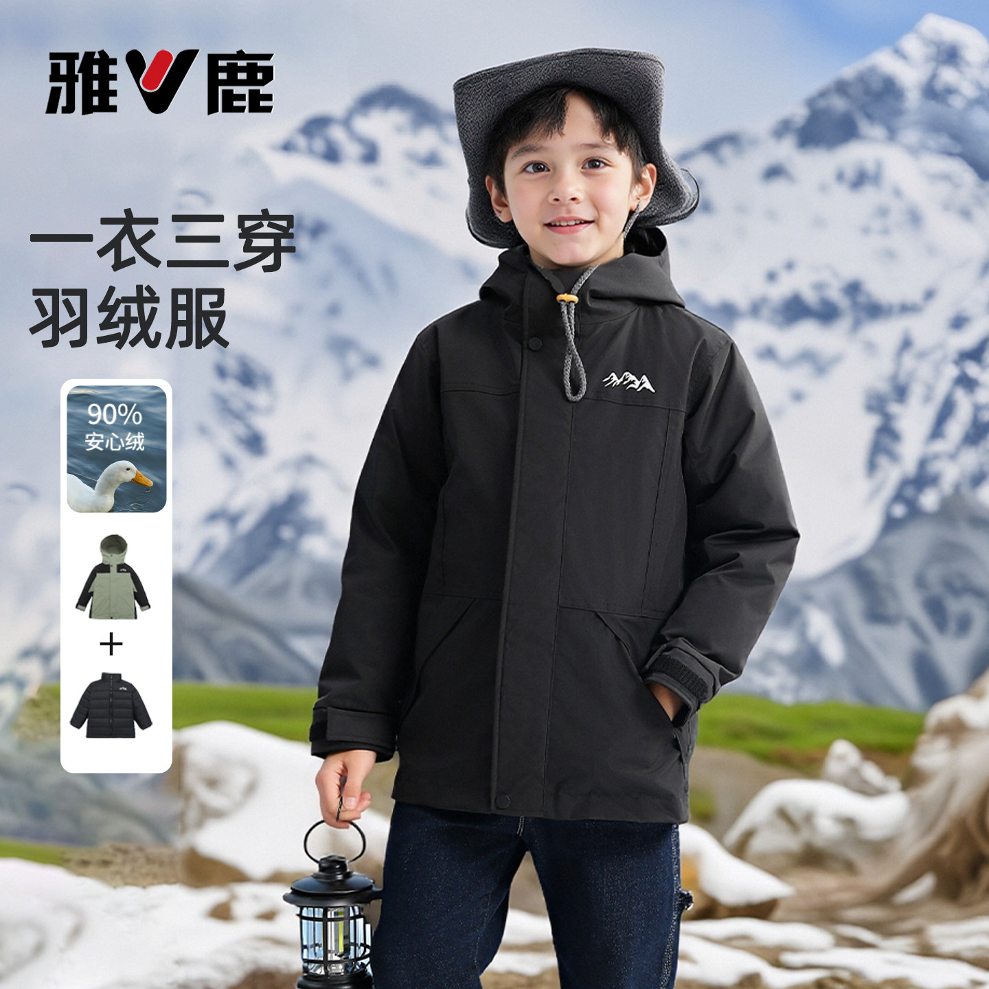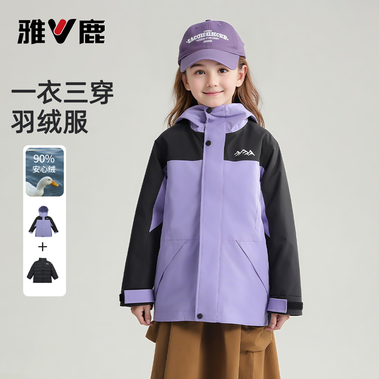 雅鹿羽绒服儿童两件套三合一冲锋加厚女防寒服春秋冬装学生班服