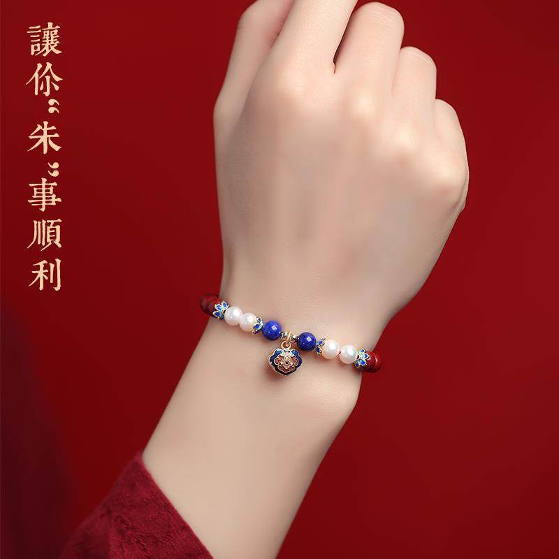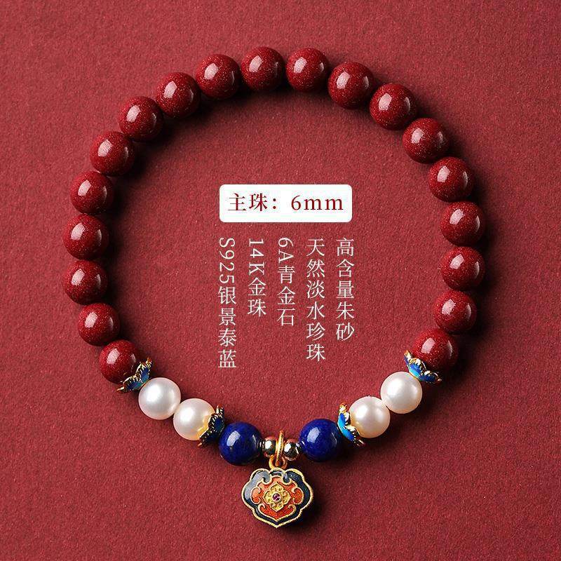天然原矿朱砂手串手链女蜜蜡珍珠女生手饰长命锁佛珠龙年礼物手环