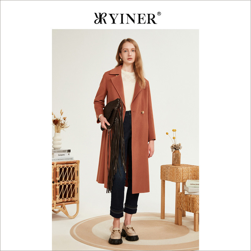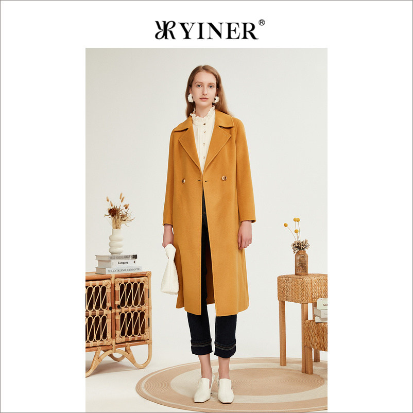 YINER音儿专选女装冬季羊毛含羊绒双面呢大衣