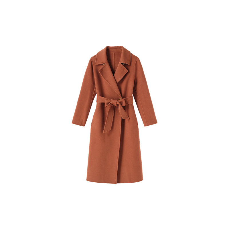 水沐飞高级感酒红色双面羊绒大翻领毛呢大衣女秋冬中长款羊毛外套