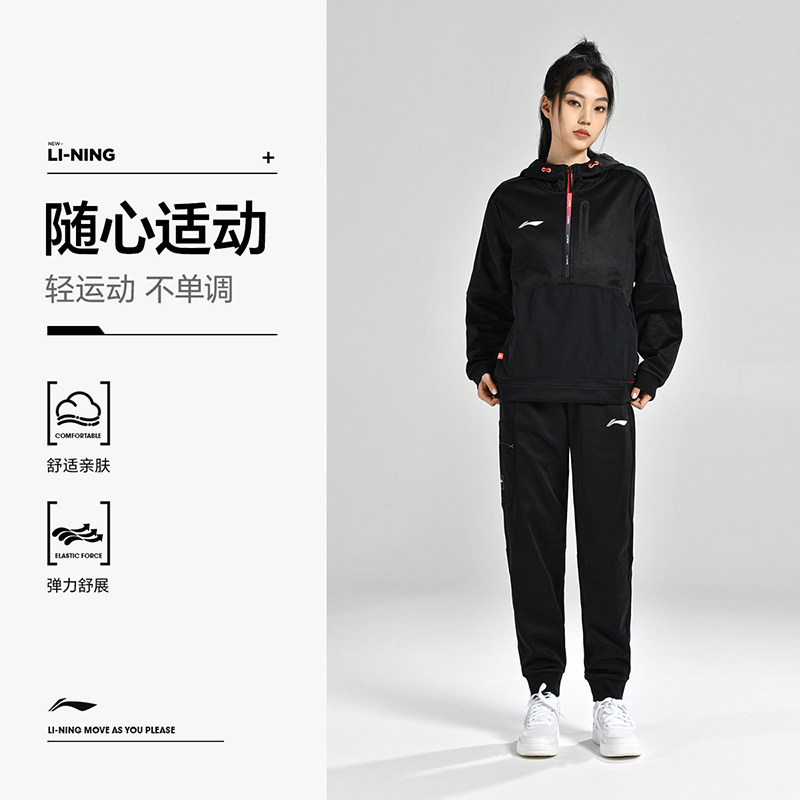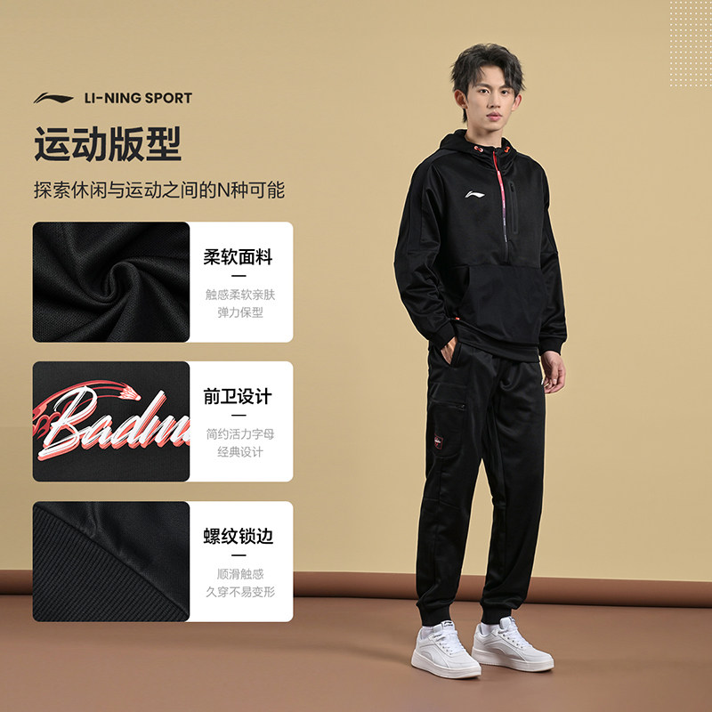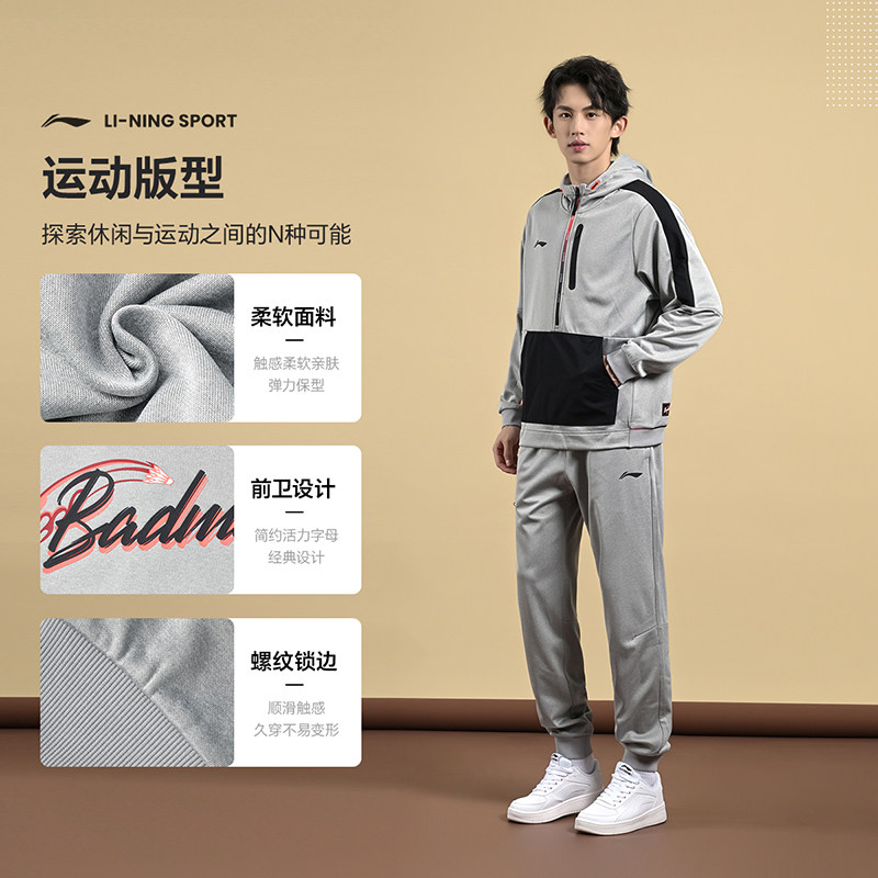 李宁2024新款羽毛球服男女同款保暖开衫连帽卫衣运动外套训练服