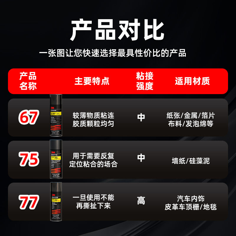 3M喷胶67胶水多功能强力胶77修补胶汽车内饰顶棚修复墙面墙纸墙布粘胶高粘度多用途万能气雾胶喷雾型粘合剂