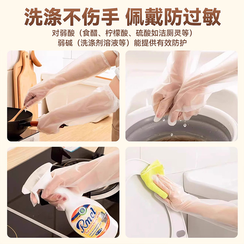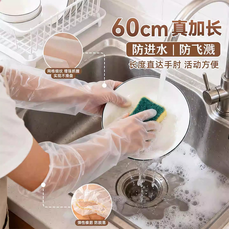 一次性手套加厚长臂女厨房洗碗洗菜家务透明家用卫生餐饮长袖手套