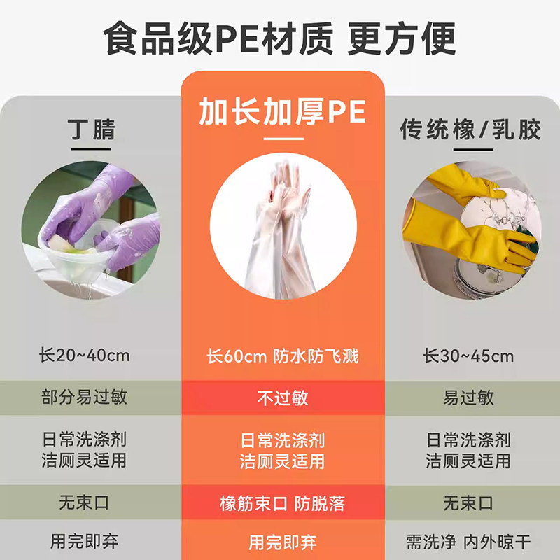 一次性手套家务加长加厚食品级pe厨房洗碗干活专用防水耐用防油