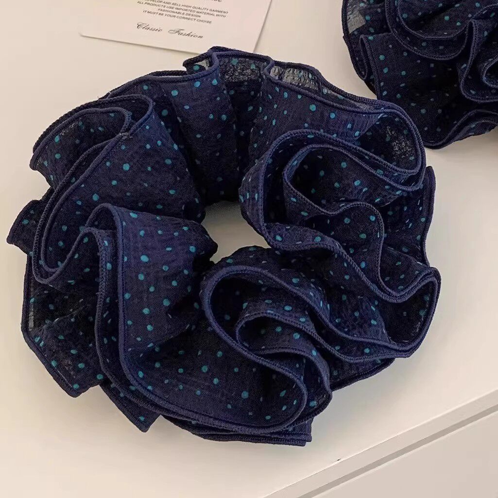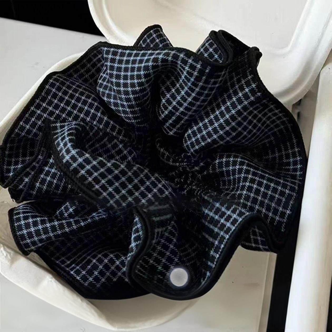 赵露思同款四层大肠发圈许我耀眼韩系藏青格子发绳丸子头发饰