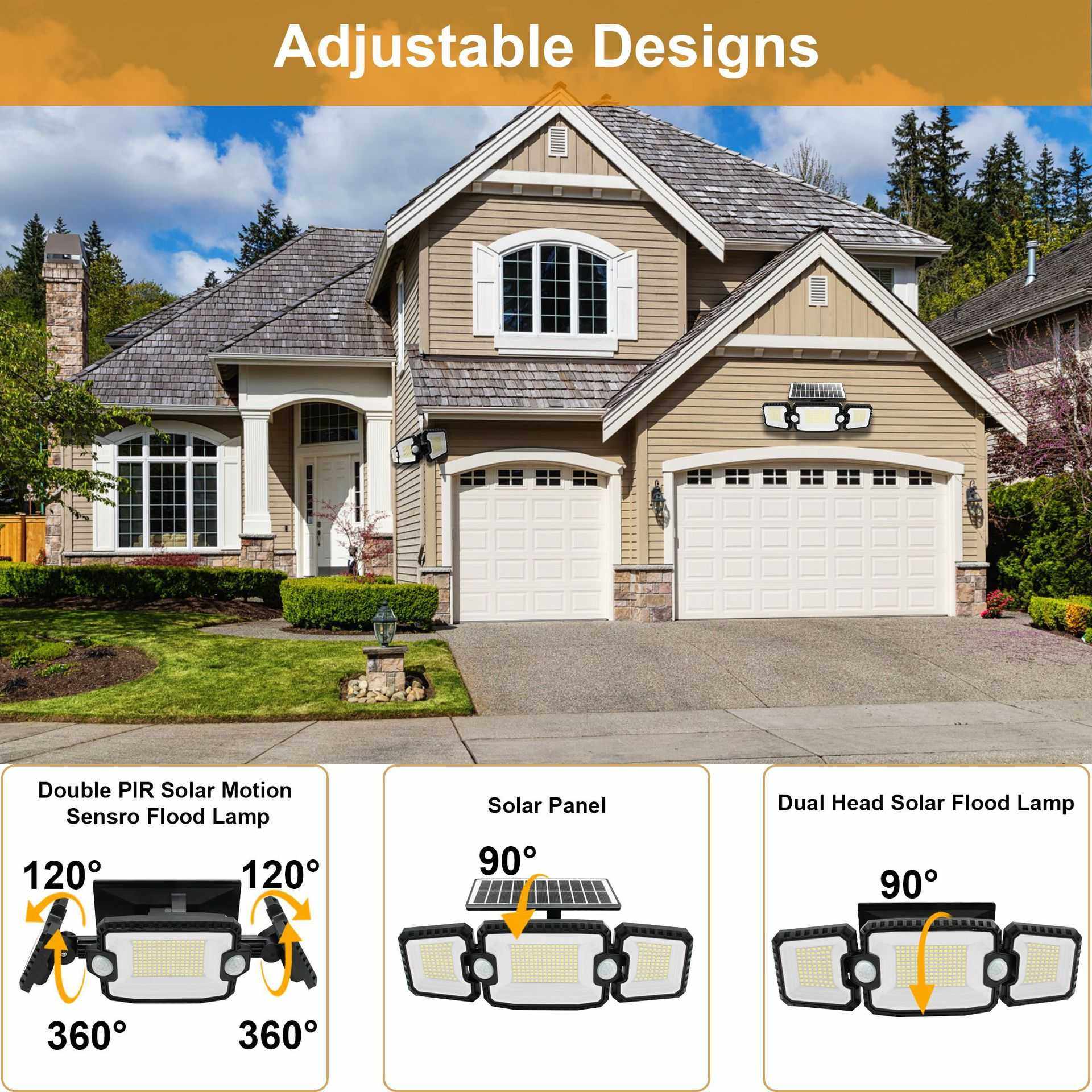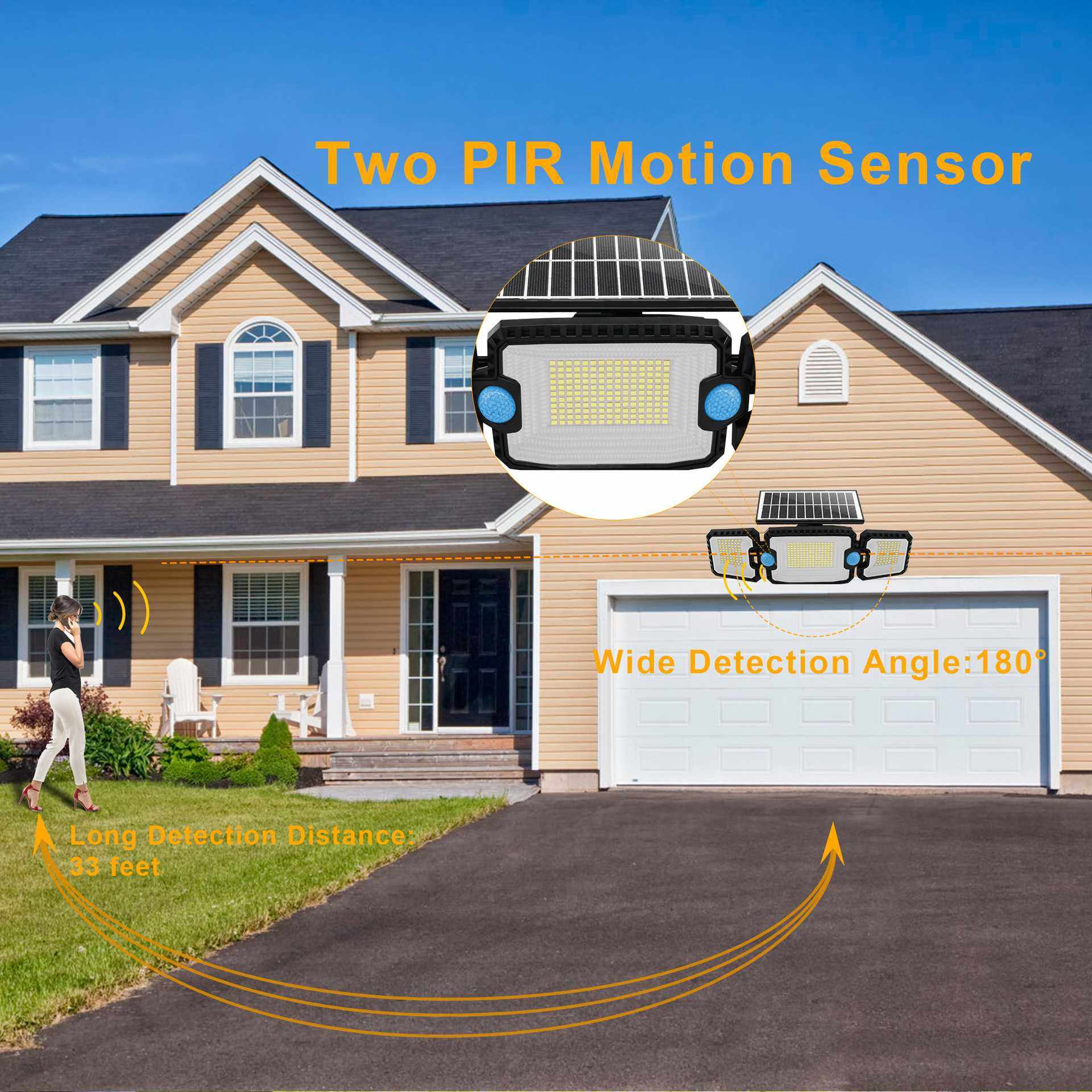 跨境爆款双感应305LED壁灯庭院车库照明户外太阳能三头省电