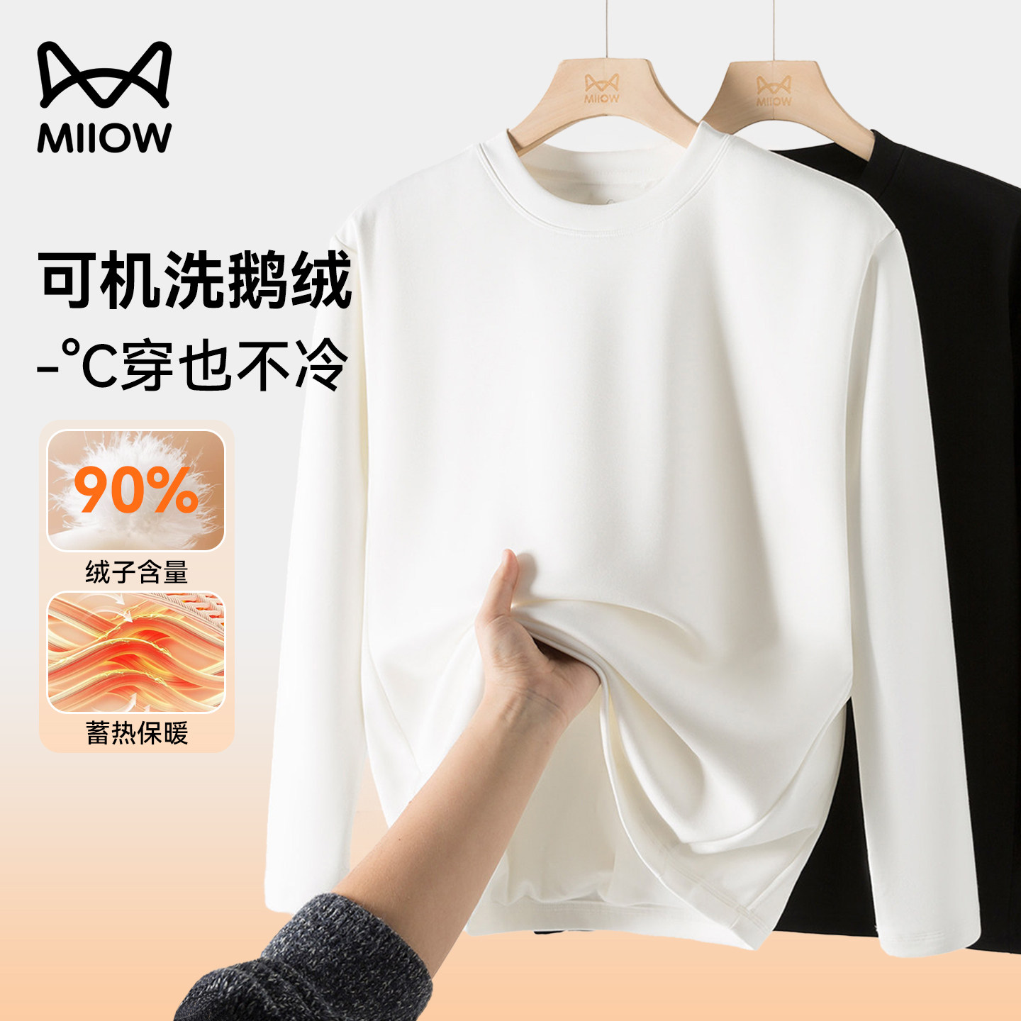猫人小白t可机洗鹅绒羽绒长袖T恤男2025冬季保暖纯色内搭打底衫厚