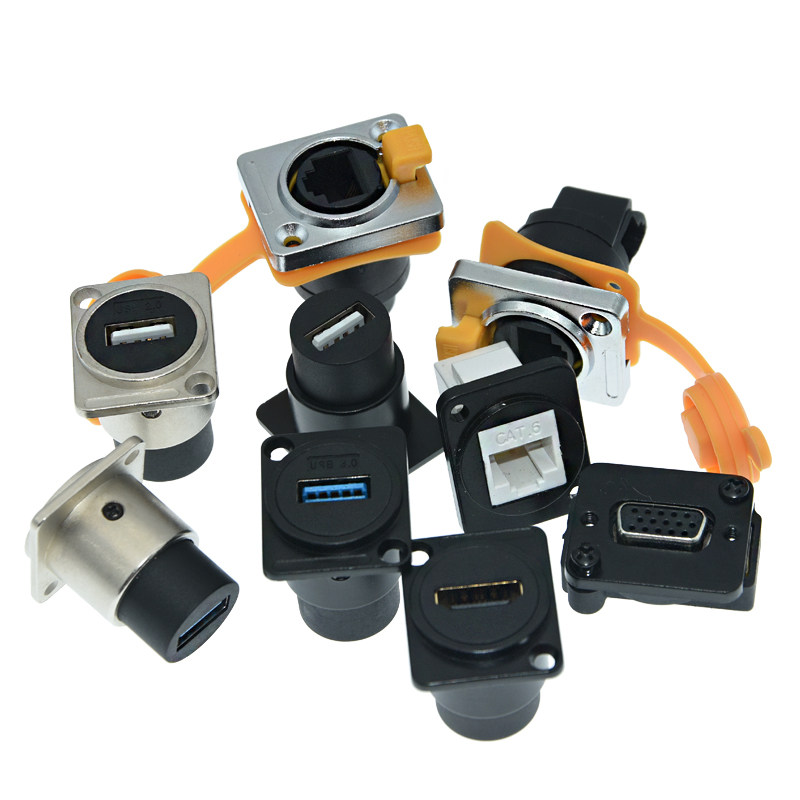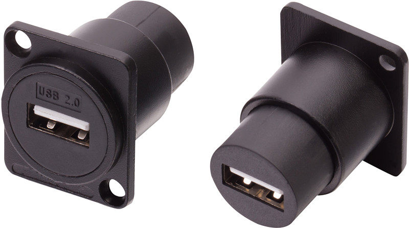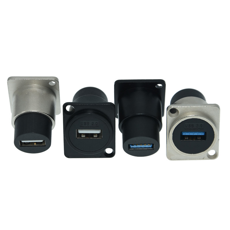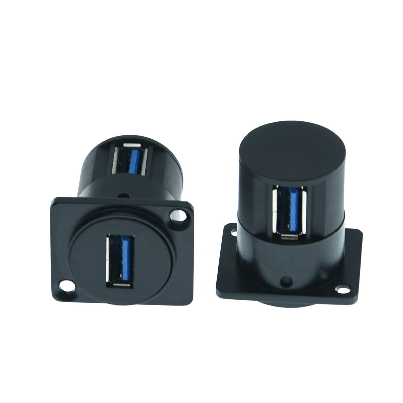 USB2.0 3.0连接器180度接线端子 穿墙式面板母座直通头法兰固定