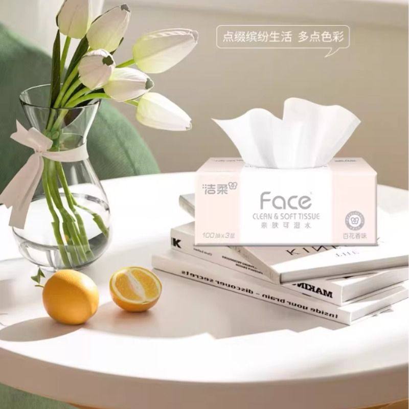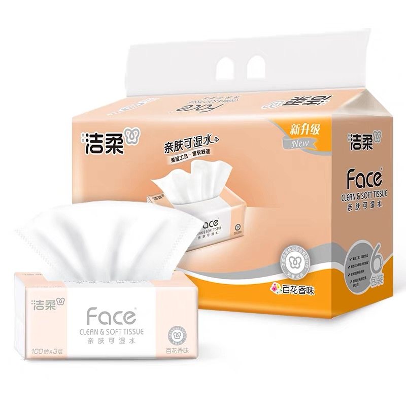 洁柔抽纸百花香味三层100抽整箱擦手纸家用餐巾纸实惠装纸巾面纸