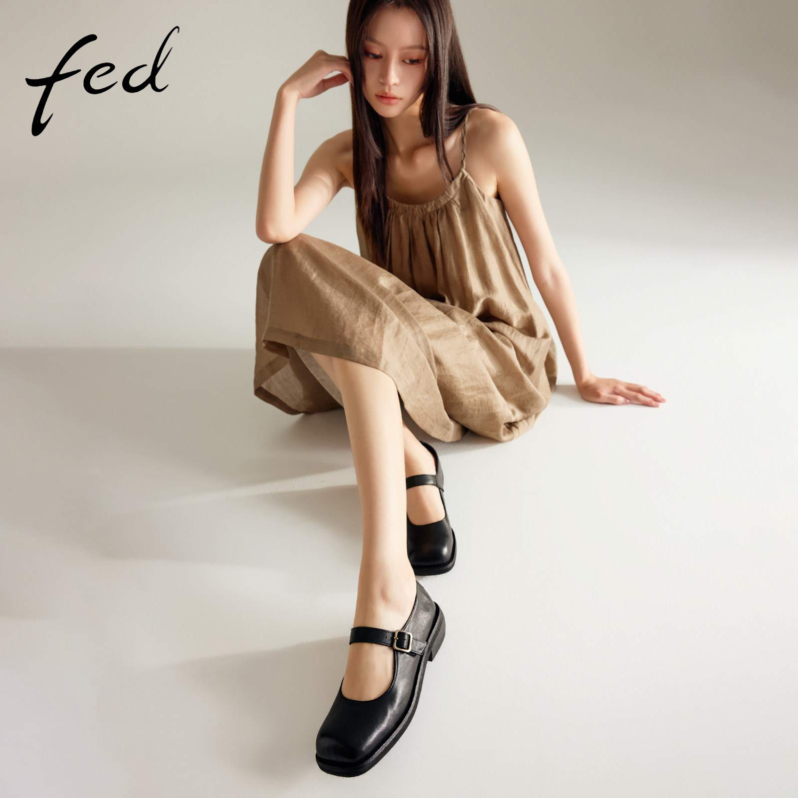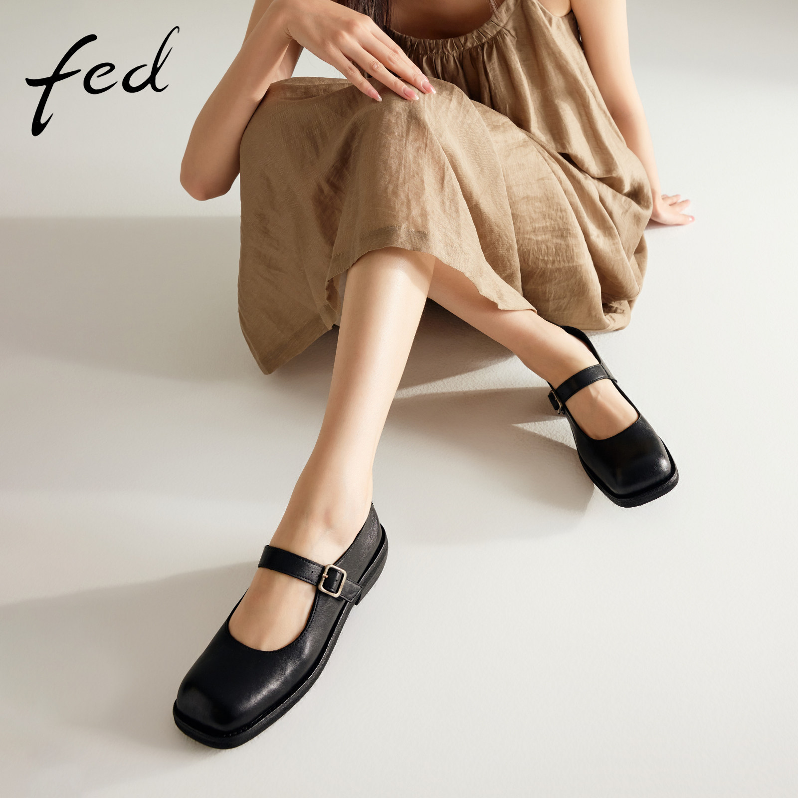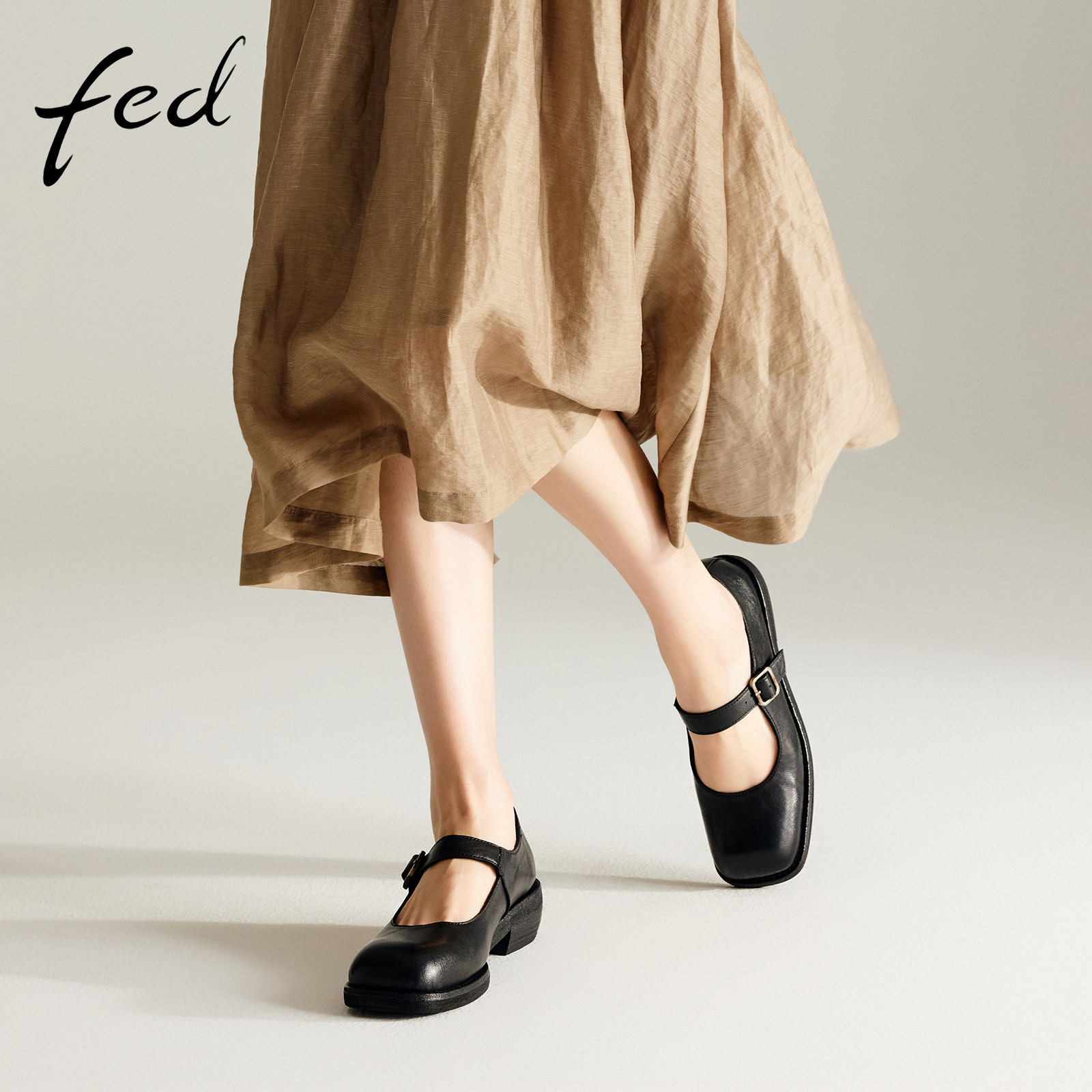 【水洗马皮】fed方头小皮鞋春季新款女鞋玛丽珍鞋女款D1220-ZF002