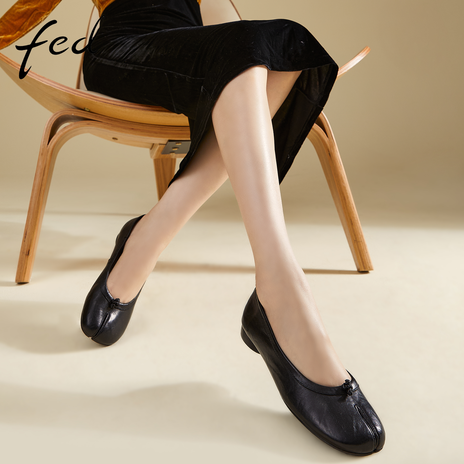 【水洗马皮】fed黑色分趾单鞋春季新款女鞋通勤鞋女款D0320-ZF021
