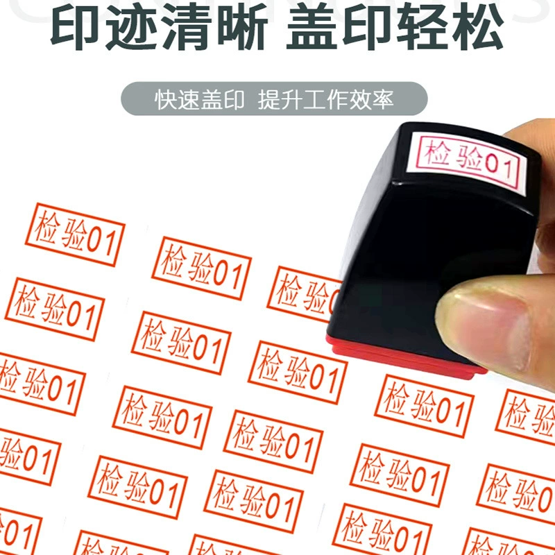 qc检验合格QC数字编号PASS自带印油自动出油小扁长方形质检光敏印章字母工号章方形质检章受控附件报废
