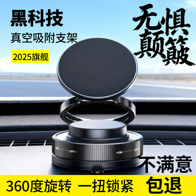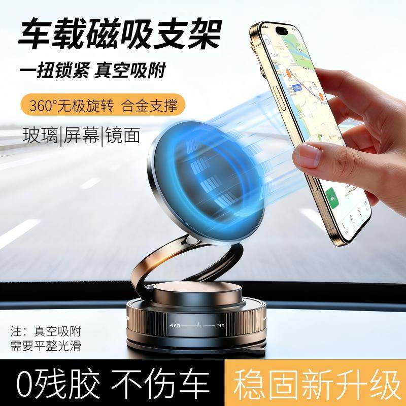 2025新款真空吸附磁吸车载手机支架大吸盘汽车导航手机座360度旋转折叠中控台出风口屏幕前挡多功能支架座