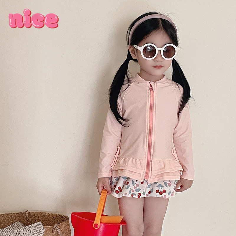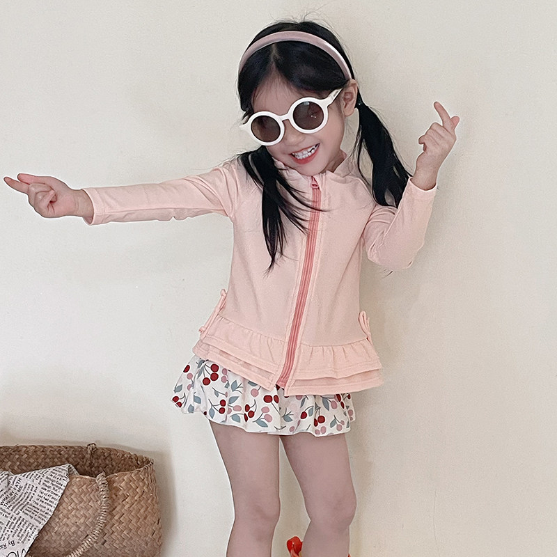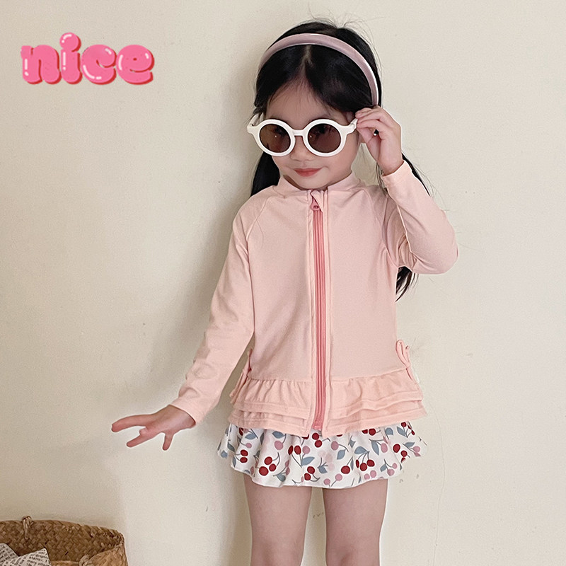女童泳衣新款ins风宝宝防晒长袖连体裙式泳装沙滩温泉速干泳衣裤