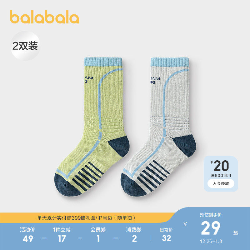【商场同款】巴拉巴拉男童袜子秋新品儿童运动风袜吸湿抗菌两双装