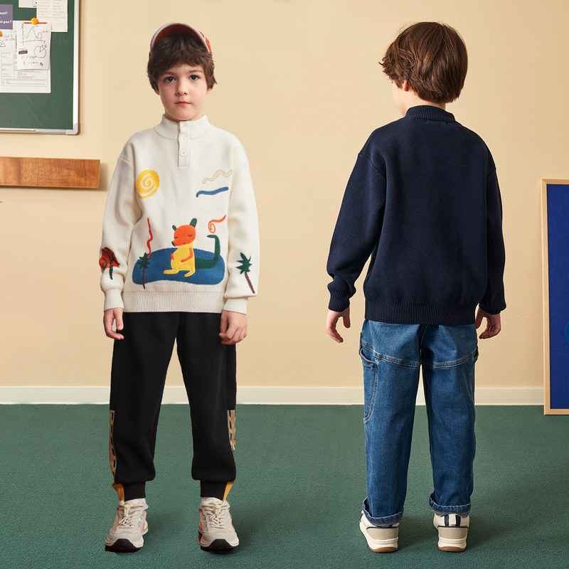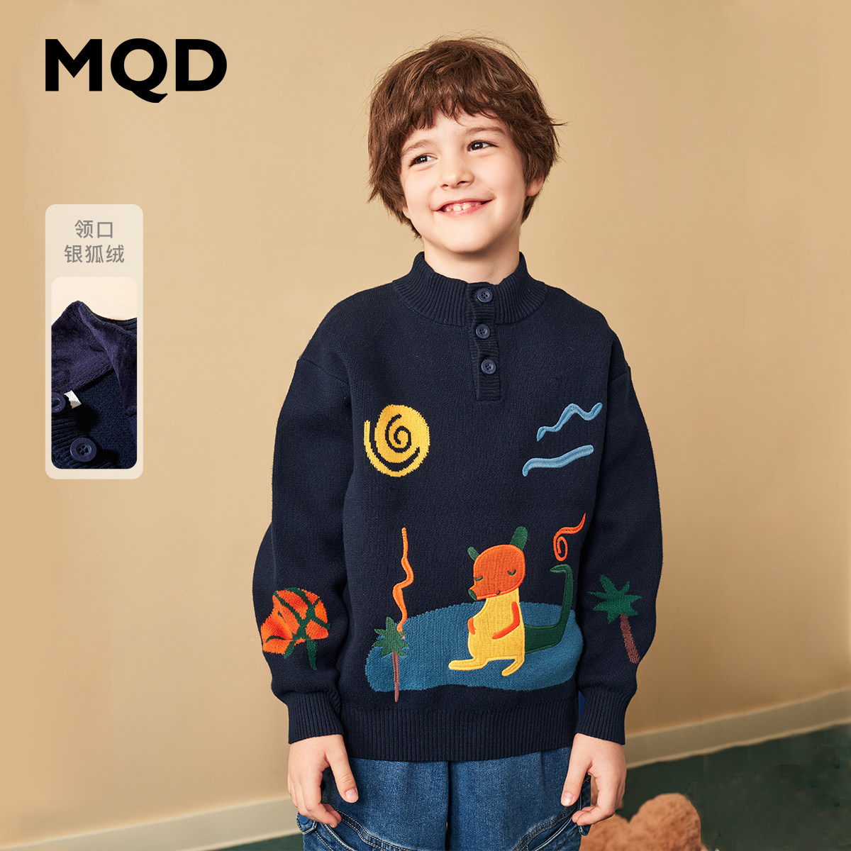[VIP]【设计师系列】MQD童装男童半开襟毛衣冬装加绒儿童针织衫