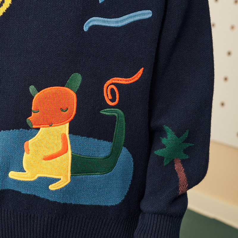 [骏马福裳]齐齐熊男童毛衣开衫冬装新年红色加厚宝宝毛线外套上衣