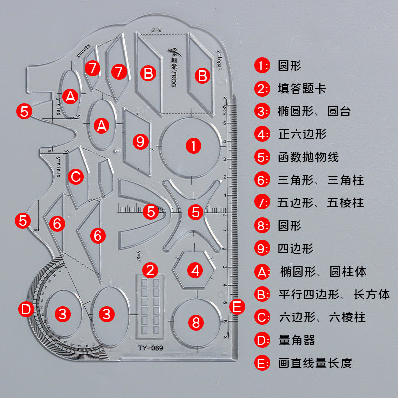 多功能尺子几何函数绘图尺学生专用软尺套装尺图形工具初高中数学小学生画图模板高考万能尺直尺文具学习用品