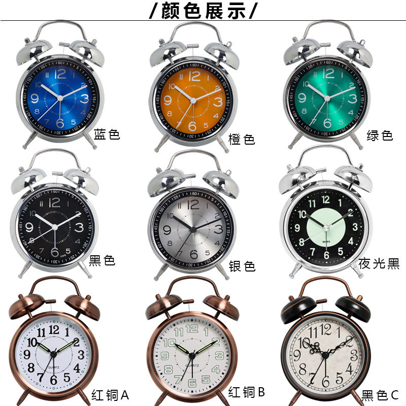 铁艺学生小闹钟儿童静音时尚台钟桌面创意夜光指针石英钟表批发