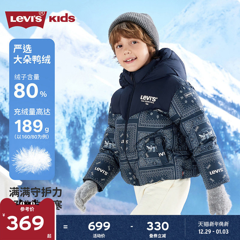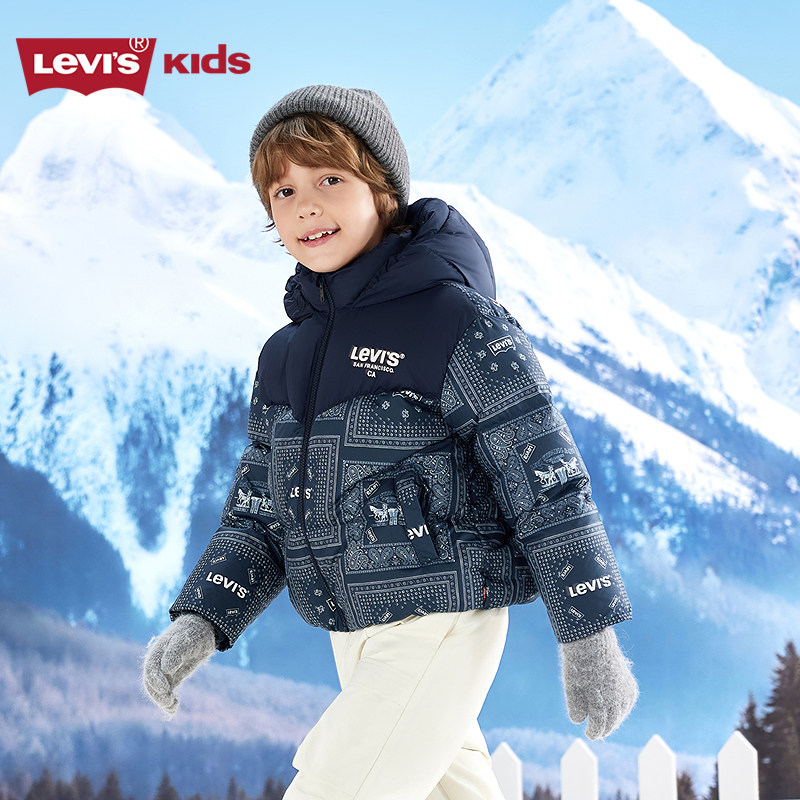 【防泼水】李维斯儿童羽绒服男童外套2025冬季保暖加厚童装面包服