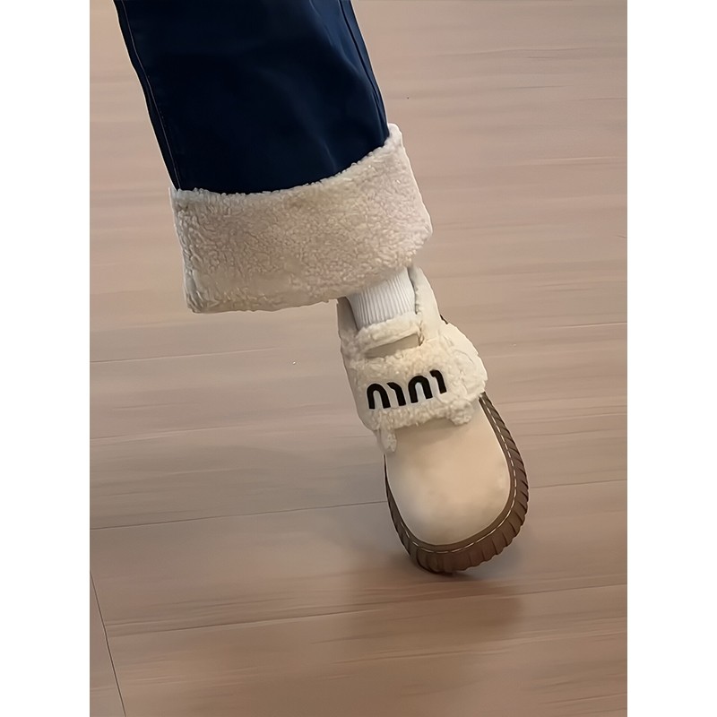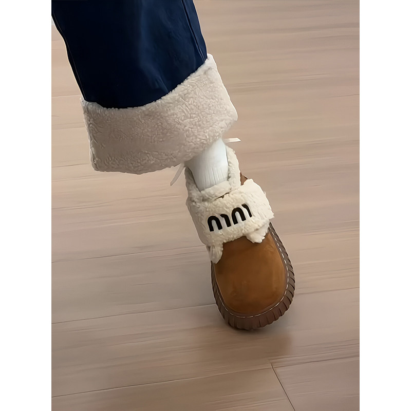 低帮厚底雪地靴女2025新款冬季懒人一脚蹬毛毛棉鞋加绒加厚女鞋子