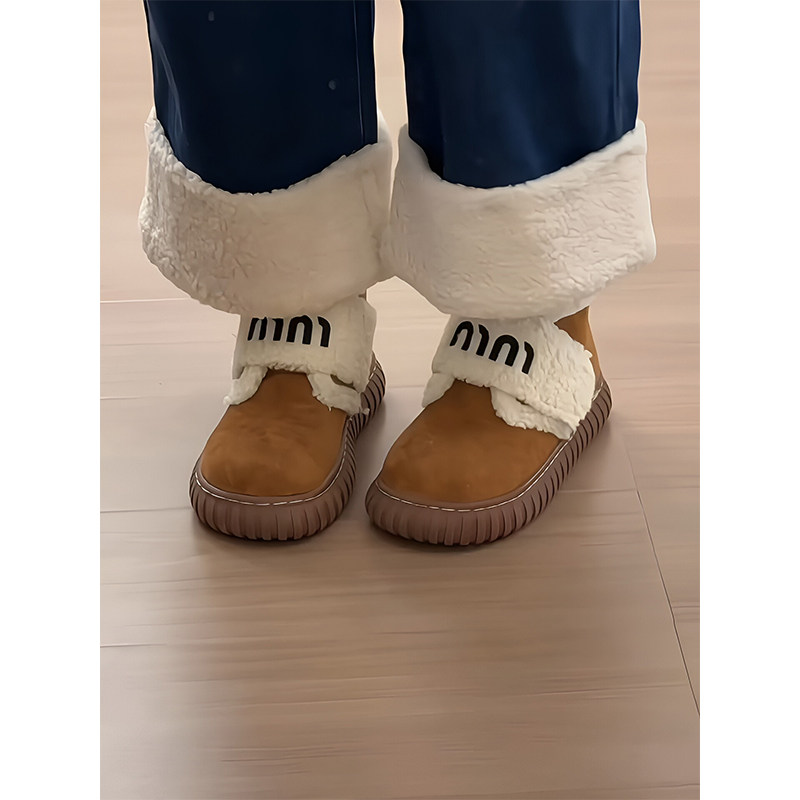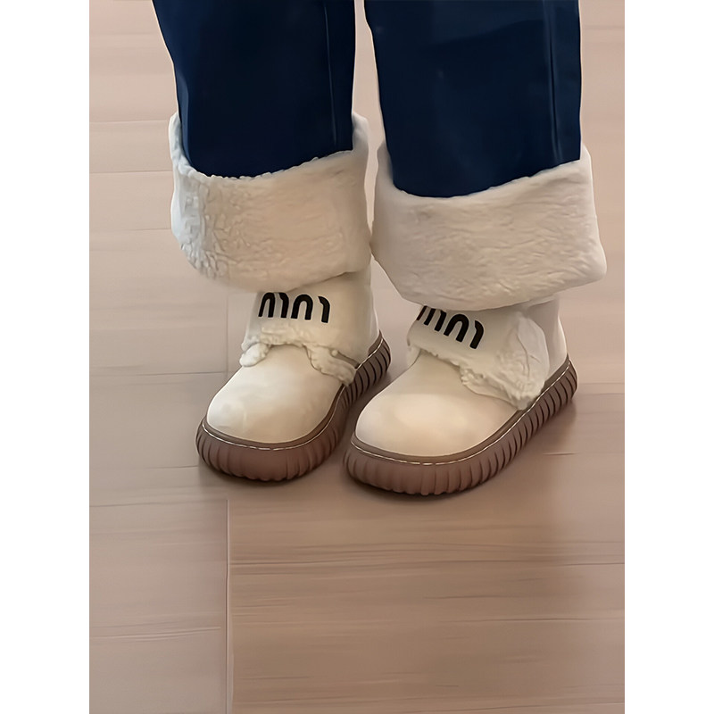 miu家厚底雪地靴女冬季真皮短靴羊毛侧拉链增高厚底加绒毛毛棉鞋