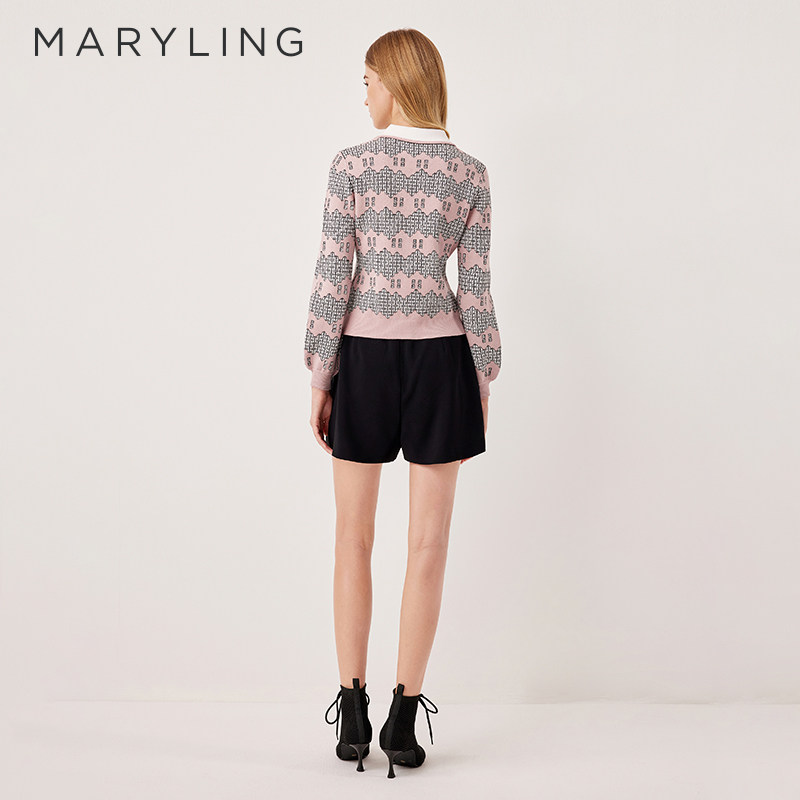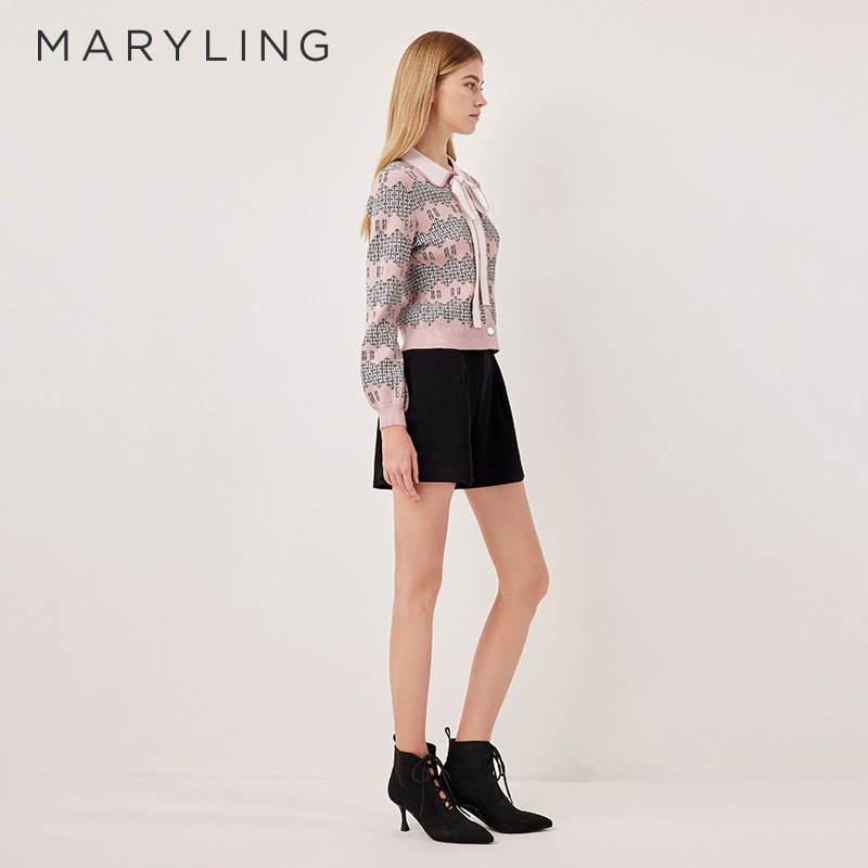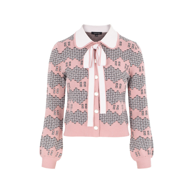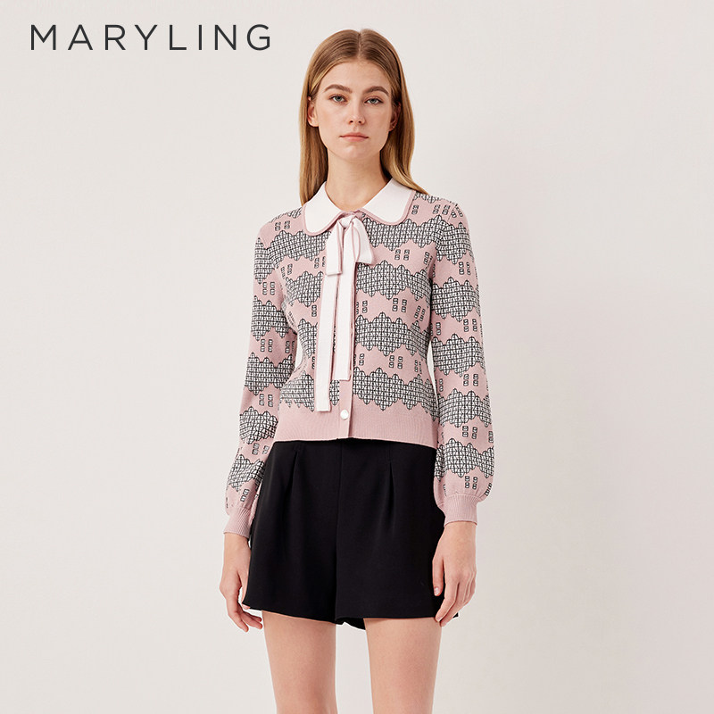 MARYLING玛俪琳2025秋季新品粉色泡泡袖系带针织开衫A1FFW08050