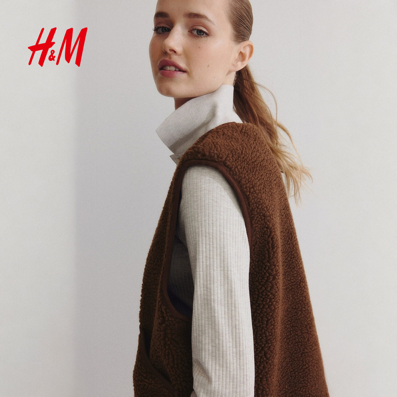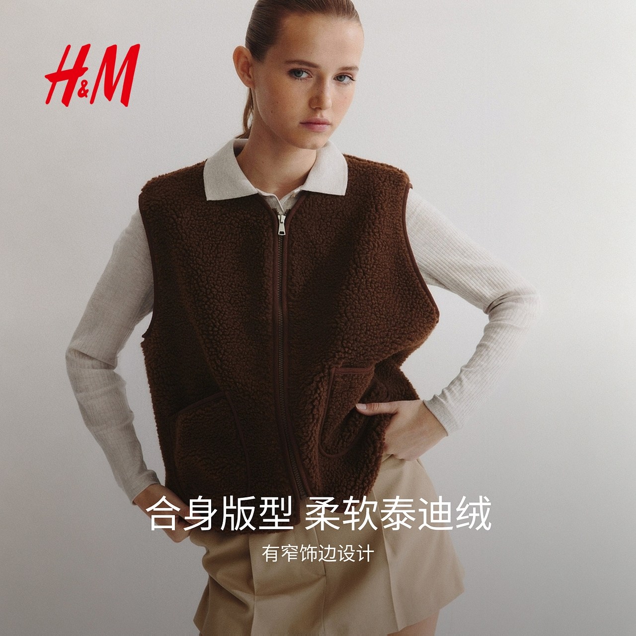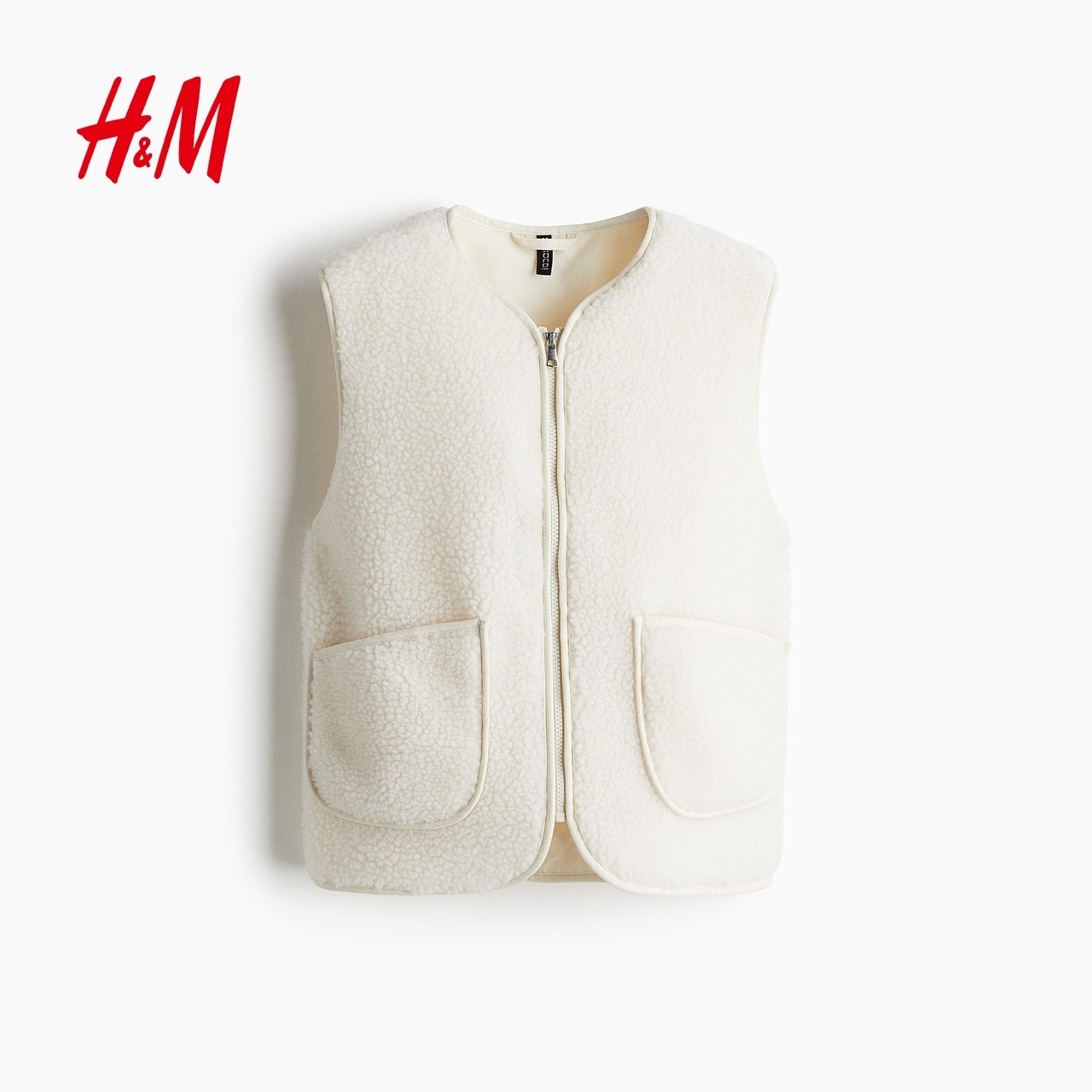 HM女装马夹2025年冬季新款简约气质时尚泰迪绒背心马甲1298266