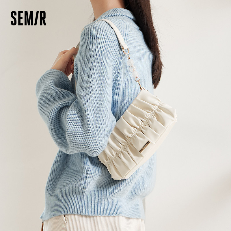 森马包包小方包女2023新款褶皱设计腋下包单肩包潮流女包斜挎包