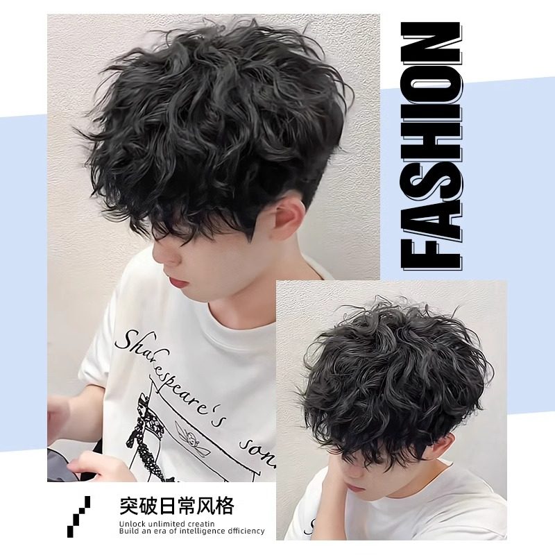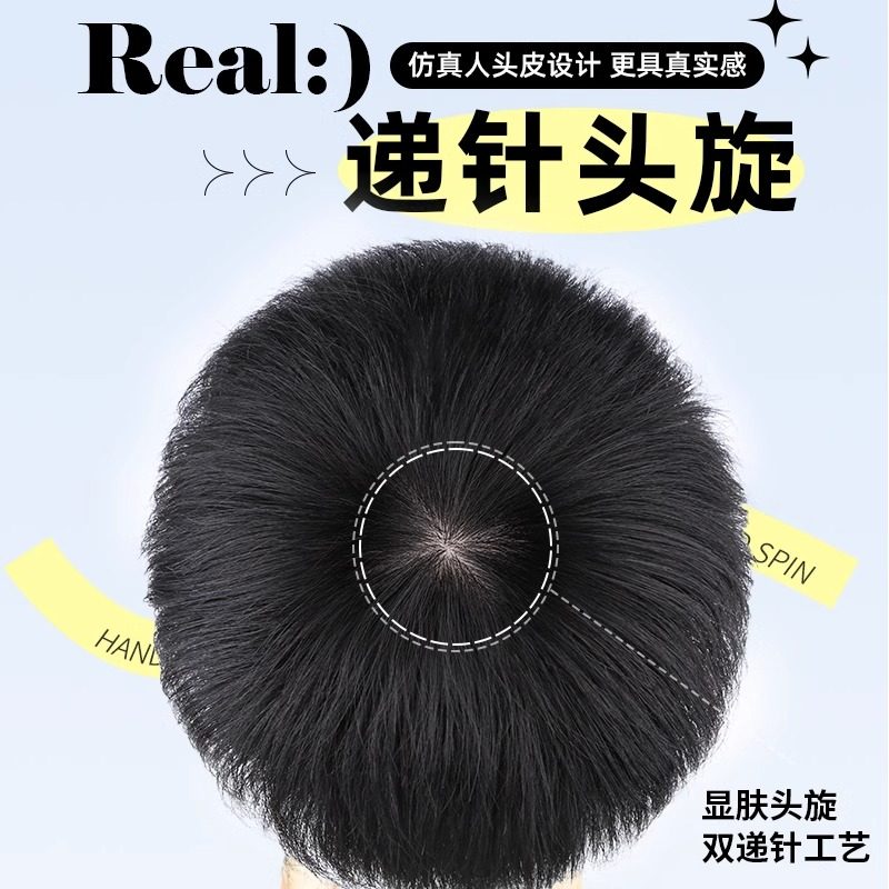 假发男短发全真莱斯利卷烫发头顶补发片隐形无痕男士发块真发前额