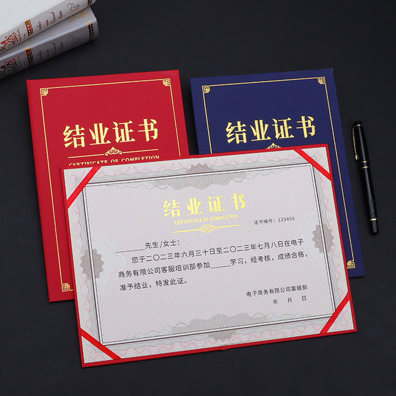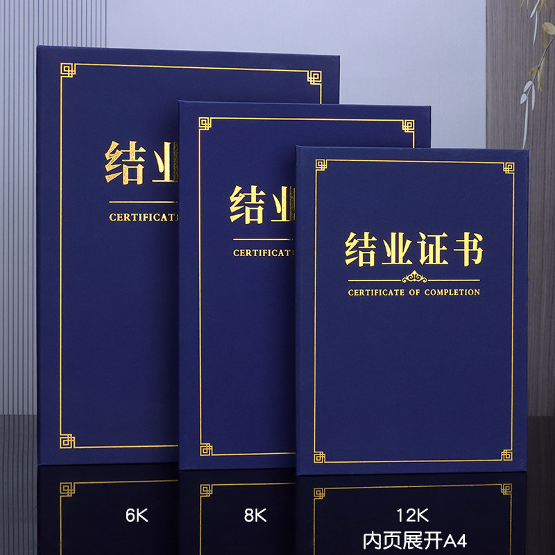 结业证书封皮定做外壳上岗培训证书进修岗位职业技能等级a4封面定制结题证烫金聘书蓝色荣誉证书订做打印