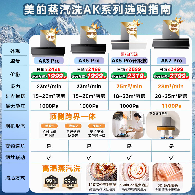 美的蒸汽洗油烟机AK5PRO/AK7PRO家用厨房大吸力顶侧双吸官方19