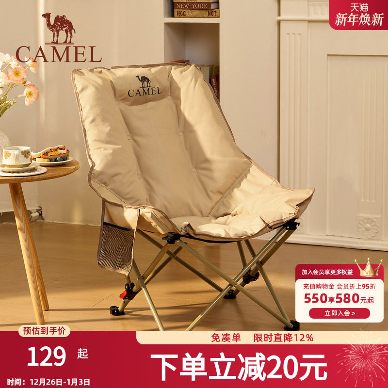 骆驼加厚夹棉高背月亮椅躺椅户外露营折叠可睡可躺午睡椅懒人钓鱼
