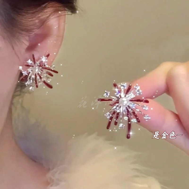 新年烟花耳钉耳夹精致小巧红色设计气质百搭轻奢耳饰女蝴蝶锆石