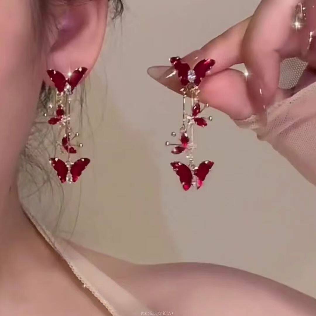 蝴蝶珍珠套装耳钉女轻奢小众高级感耳骨钉耳饰品2025新款爆款耳环