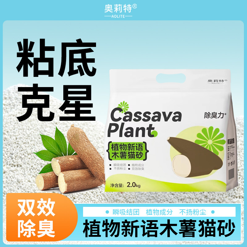 奥莉特植物新语纯木薯猫砂除臭不粘底盆猫咪用品豆腐国货混合无尘