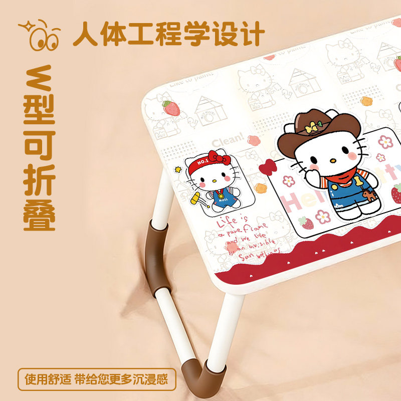 凯蒂猫床上小桌子可折叠2025学生宿舍可移动笔记本电脑桌高颜值小书桌儿童家用卧室飘窗写作业阅读小桌板便携