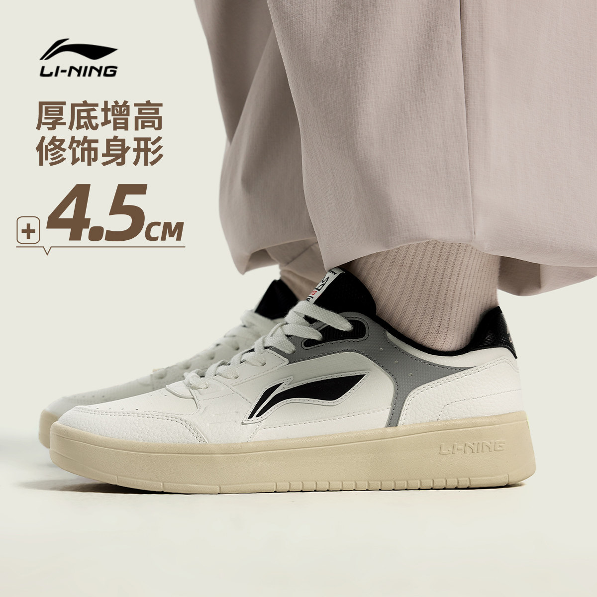 李宁元宝V3丨板鞋男鞋新款百搭轻便厚底增高小白鞋休闲鞋男运动鞋