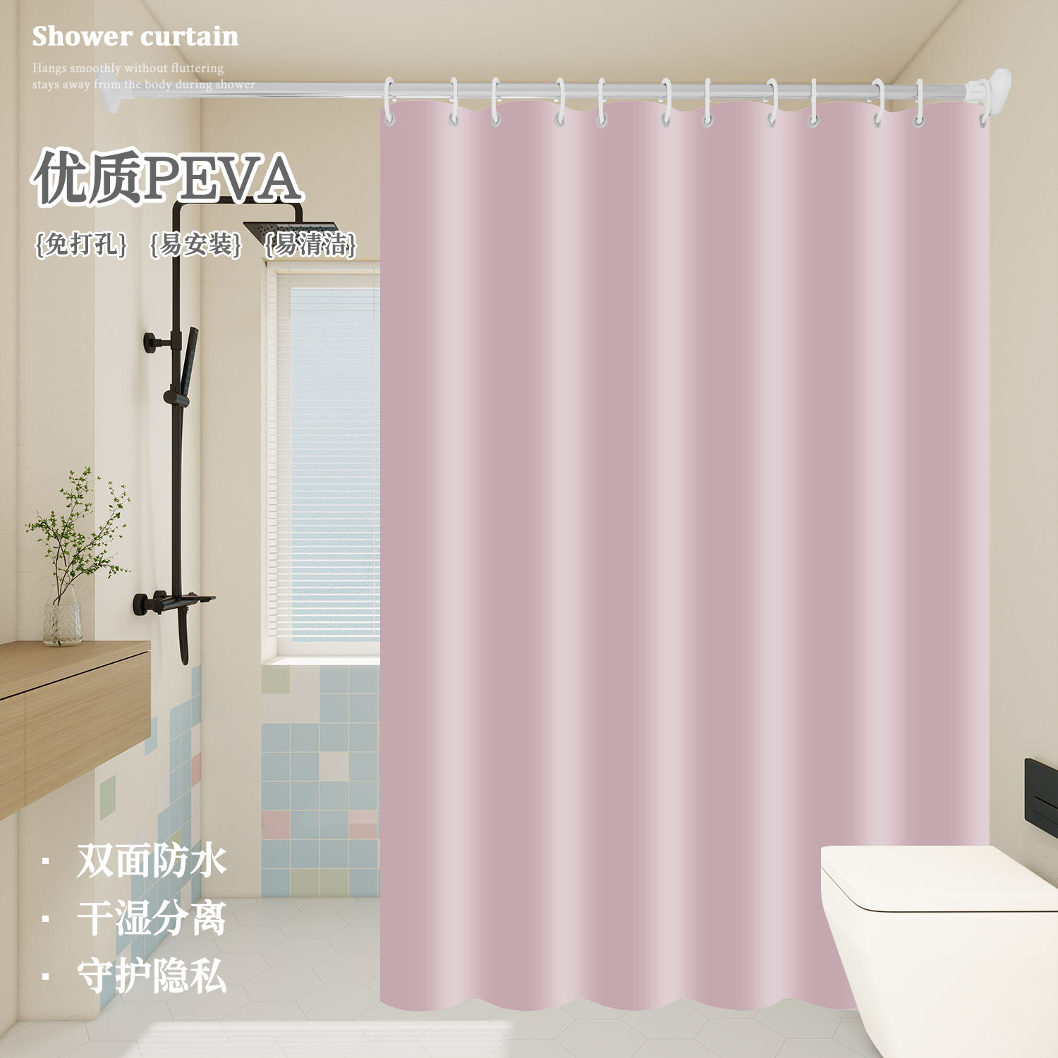 浴帘防水卫生间隔断帘子浴室塑料遮挡门帘窗帘免打孔遮挡帘挡水