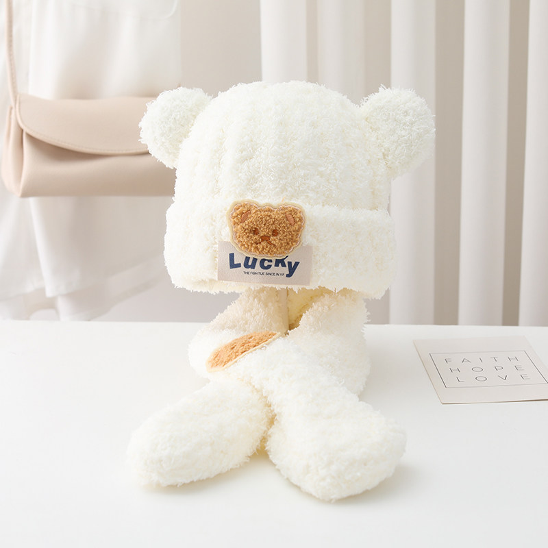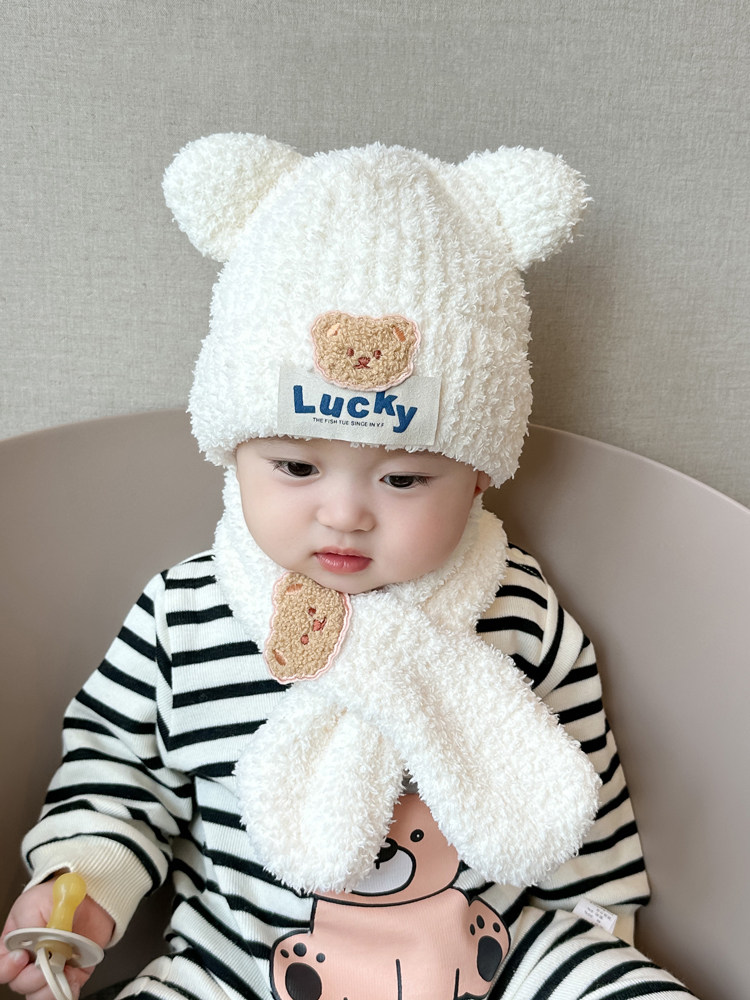 尼多熊婴儿帽子秋围脖一体宝宝毛绒帽防风护耳帽冬季保暖婴幼儿帽