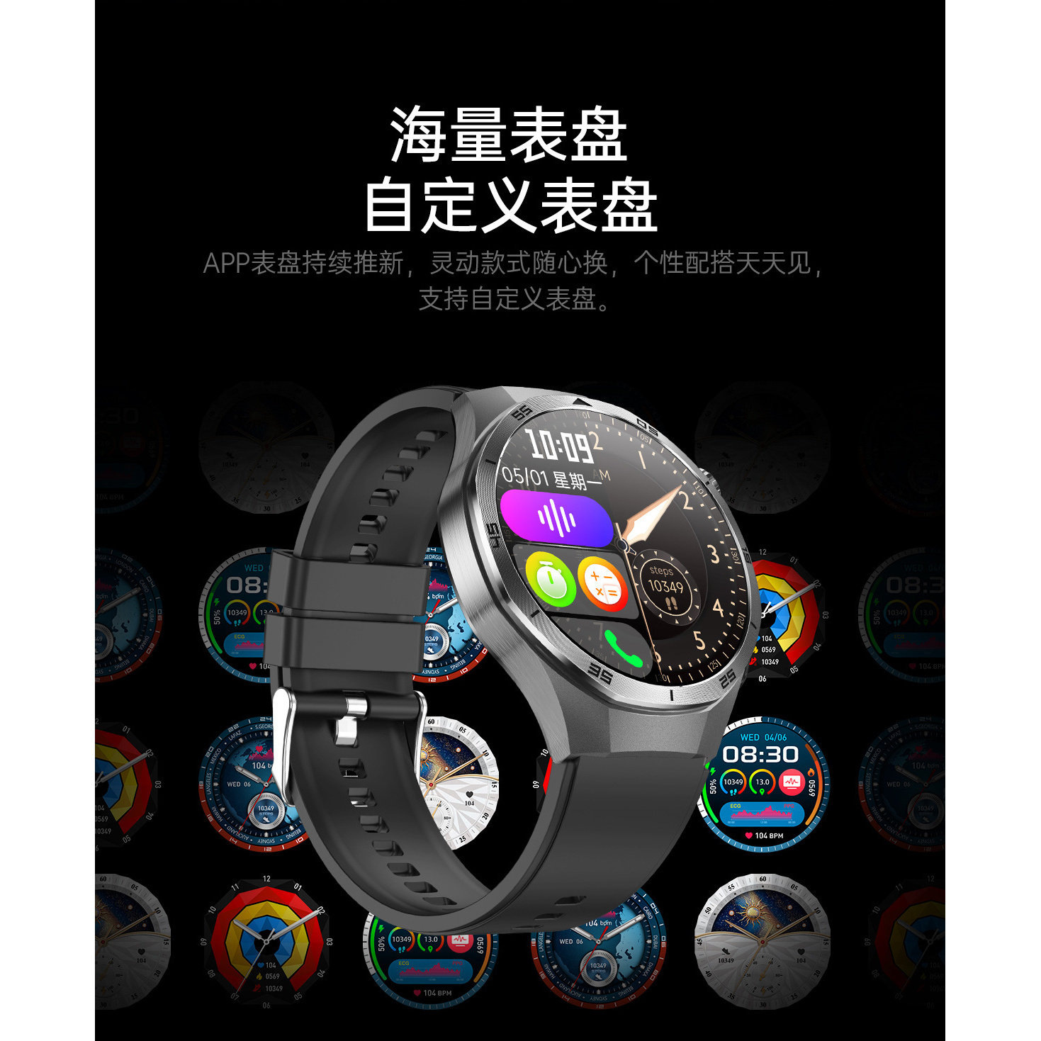 VRST高精度血糖测血压风险评估无创智能手表全天动态心率血氧心电健康睡眠监测量仪尿酸运动蓝牙通话手环老人