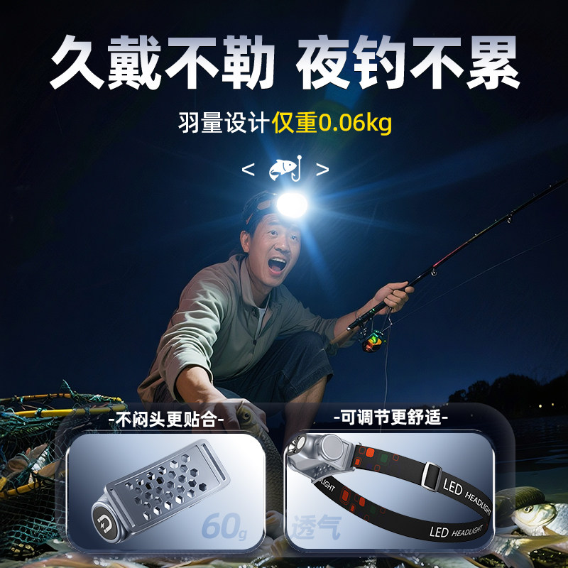 夜钓鱼头灯强光充电超亮头戴式户外超长续航手电筒矿灯轻感应专用