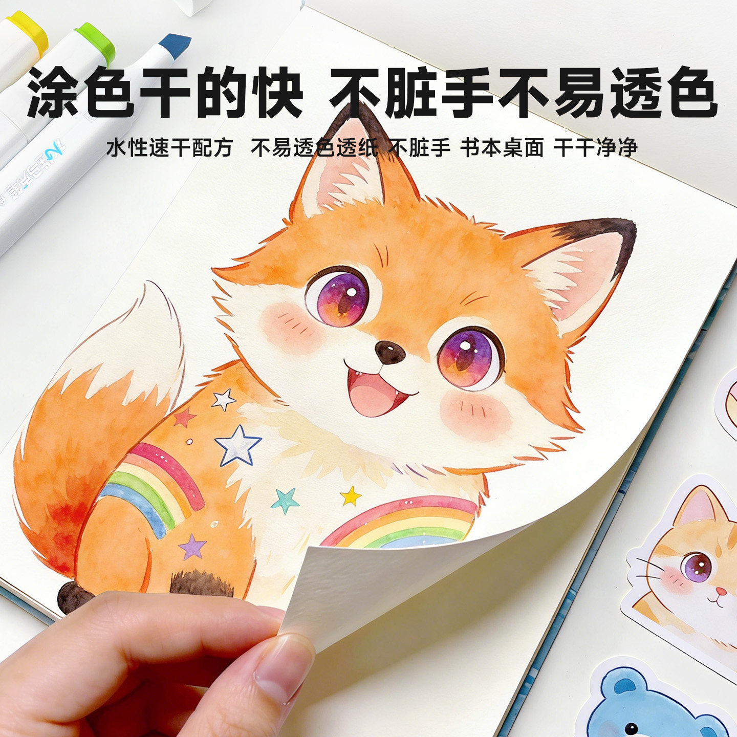 Touchmark食品级马克笔可水洗幼儿园儿童专用小学生画笔水性笔48色不透色可叠色动漫绘画水彩笔60色软头