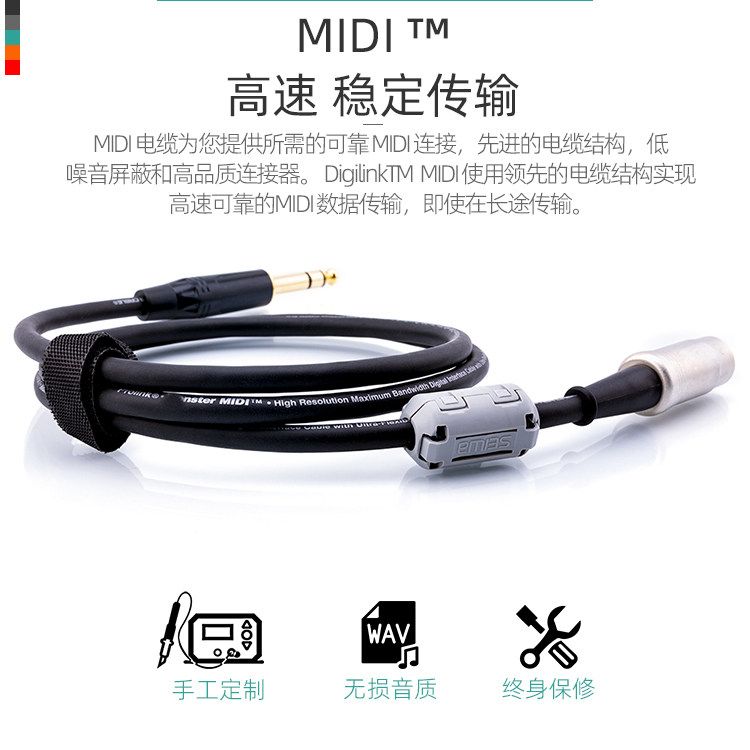 怪兽五芯MIDI转6.35mm立体声大三芯键盘电子琴转调音台连接线5PIN